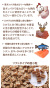 たんぱく質31.0%以上、脂質9.0%以上、粗繊維0.5%以下、灰分6.0%以下、水分33.0%以下