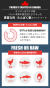 粗たんぱく質 40%以上, 脂肪分 18%以上, 粗繊維 4%以下, 粗灰分 9%以下, 水分 10%以下, カルシウム 1.4%以上, リン 1.1%以上, マグネシウム 0.1%以上, タウリン 0.1%以上, オメガ6脂肪酸 3%以上, オメガ3脂肪酸 1.2%以上, DHA 0.35%以上, EPA 0.35%以上