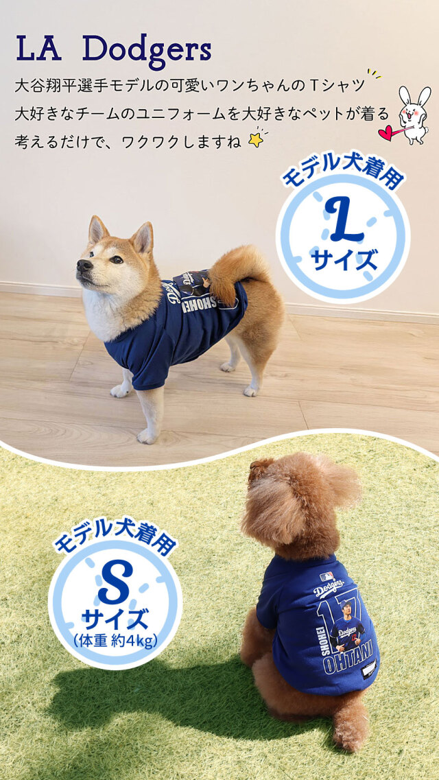 (送料無料/沖縄を除く)MLB公式 ロサンゼルス ドジャース 大谷翔平選手モデル 犬 ドッグウェア ユニフォーム フォト Tシャツ M