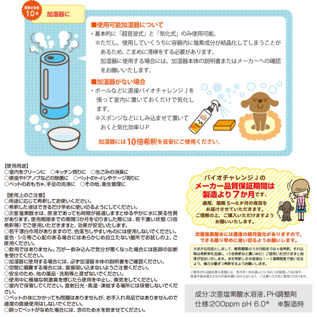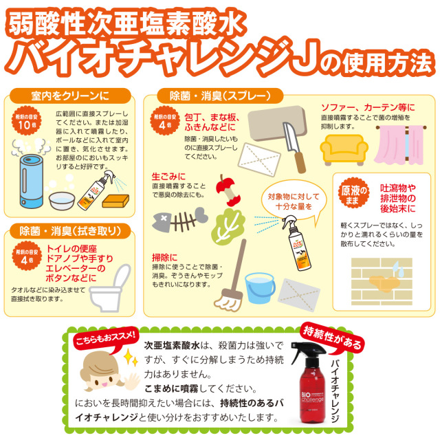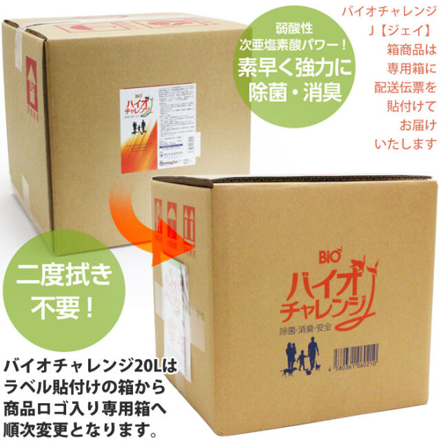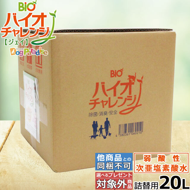 弱酸性次亜塩素酸水 人用ペット用消臭除菌剤 送料無料 バイオチャレンジJ 20L(送料無料/沖縄を除く)