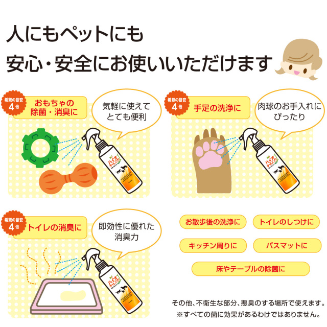 即効性に優れた除菌消臭剤(人にもペットにも安心)、二度拭き不要