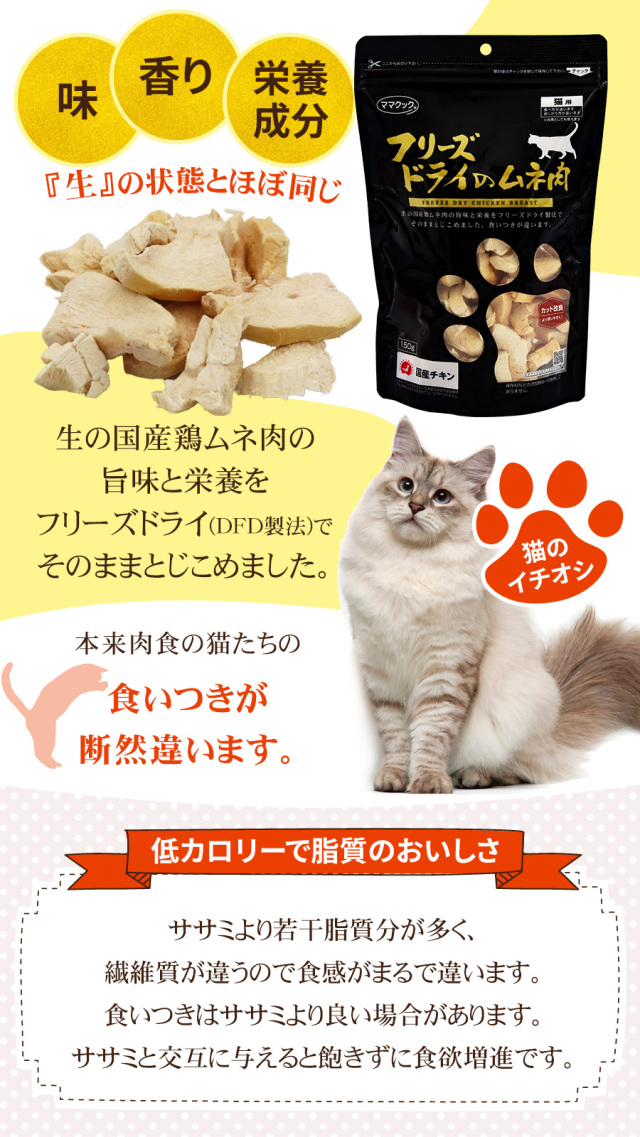 ママクック フリーズドライのムネ肉猫用 150g×3袋セット