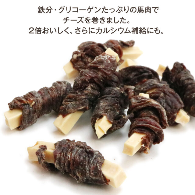 馬肉は高たんぱくでありながら低カロリー、さらにカルシウムや鉄分も豊富。みんな大好きなチーズと一緒♪