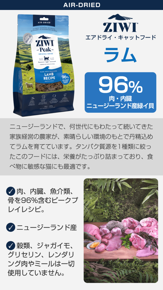 ジウィピーク エアドライ キャットフード ラム 400g