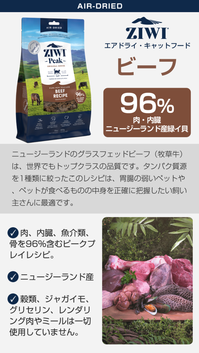 ジウィピーク エアドライ キャットフード グラスフェッドビーフ